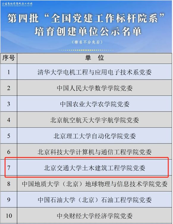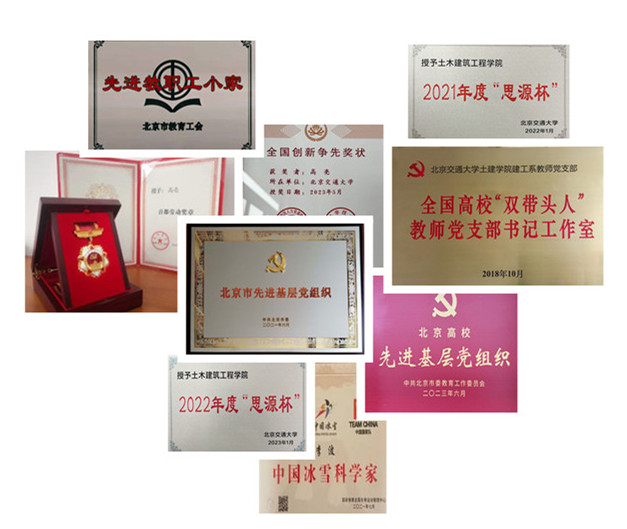 近年来,集体曾先后获评全国高校“双带头人”教师党支部书记工作室(全校唯一)、2个“全国党建工作样板支部”(占全校1/3)、全国高校黄大年式教师团队(占全校1/2)、全国高校“百个研究生样板党支部”(占全校1/2)、北京市先进基层党组织(全校唯一)、2个北京高校先进基层党组织、北京高校德育工作先进集体、北京市教育工会先进教职工小家等荣誉称号,入选北京市教工委主编的《党支部工作规范》典型案例(全校唯一)、北京教工委十个高校教师党支部工作法试点单位(全校唯一)、北京高校100个支部工作法3个(占全校3/8),学院师生党员曾获评全国创新争先奖、全国高校百名研究生党员标兵(全校唯一)、首都劳动奖章、首都精神文明建设奖、北京市优秀共产党员、全国科普工作先进工作者、北京高校优秀共产党员、北京青年五四奖章、全国铁路优秀共青团干部、北京高校就业工作先进个人等荣誉称号。