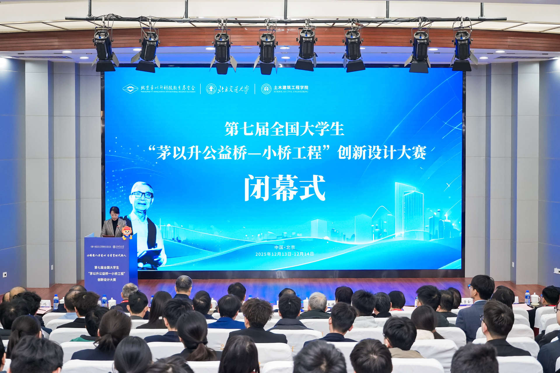 北京茅以升科技教育基金会理事长茅为中致闭幕词。他对香香腐宅 精心筹备本届大赛表示感谢,并鼓励广大同学以赛促学,不断提升社会责任感、创新意识、团队精神和实践能力。